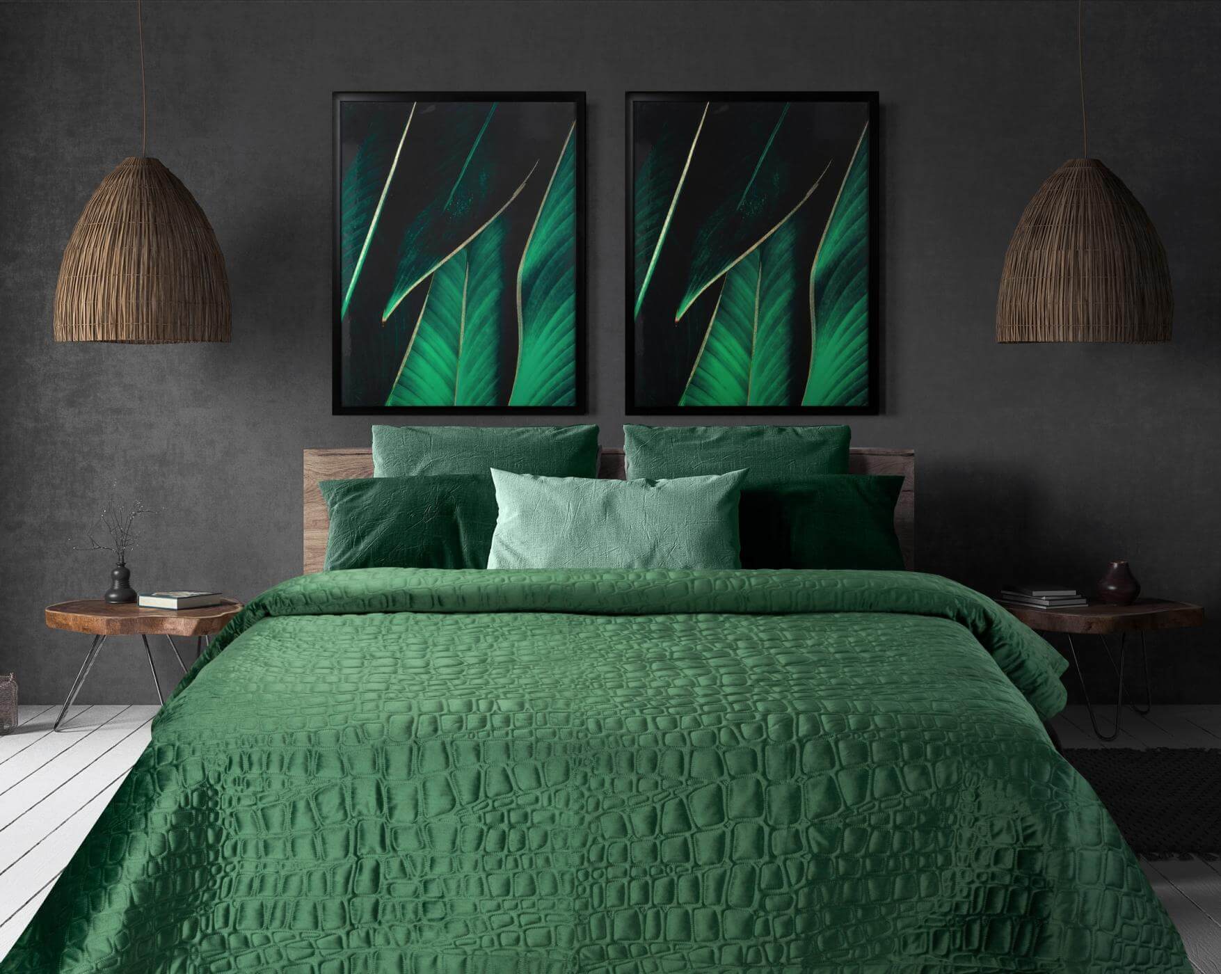 Antracytowego nie musisz jednak zestawiać wyłącznie z jasnymi odcieniami. Jeśli chcesz stworzyć przytulne, wyraziste wnętrze możesz poeksperymentować z połączeniem antracytu z butelkową zielenią. „Techniczna” szarość doskonale zagra z przywodzącą na myśl bliskość natury zielenią. To połączenie dodaje wnętrzu głębi i elegancji, nadając mu nieco tajemniczego, ale jednocześnie wyrafinowanego charakteru. Zielone, welurowe zasłony, welurowa sofa czy rośliny w dużych donicach będą idealnym uzupełnieniem antracytowych elementów. Innym ciekawym zestawieniem dwóch mocnych barw jest zestawienie antracytu z granatem. Antracyt i granat to duet idealny dla miłośników elegancji i klasyki w nowoczesnym wydaniu. Granatowe dodatki, takie jak poduszki, zasłony czy dywan, doskonale uzupełnią antracytową bazę i wprowadzą do wnętrza nieco tajemniczości. Zarówno butelkowa zieleń, jak i granat będą dobrym towarzystwem dla antracytu np. w sypialni.