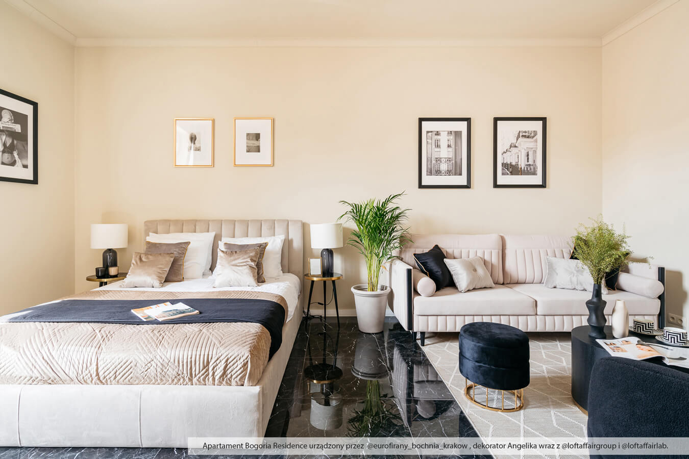 Już wiemy, ze beż świetnie komponuje się z barwami natury, ale także stanowi świetny duet z bardziej zdecydowanymi kolorami. Z czym możemy go zestawić? Butelkowa zieleń, nasycony granat i błękit, czerwień, zgaszona żółć, pomarańcz – te kolory z powodzeniem można zestawić z beżami. Jeśli wolisz jaśniejsze tony, wybierz pastelowe odcienie zieleni – szałwiowy czy miętowy lub nawet pistacjowy. Kolory te w beżowych i brązowych wnętrzach najlepiej wprowadzać poprzez dodatki. Na podłodze rozłóż dywan, na kanapie poukładaj dekoracyjne poduszki, koce i pledy. W oknach zawieś zasłony, a na ścianach powieś grafiki lub lustro. Tylko nie przesadź z nadmiarem dodatków i kolorów.