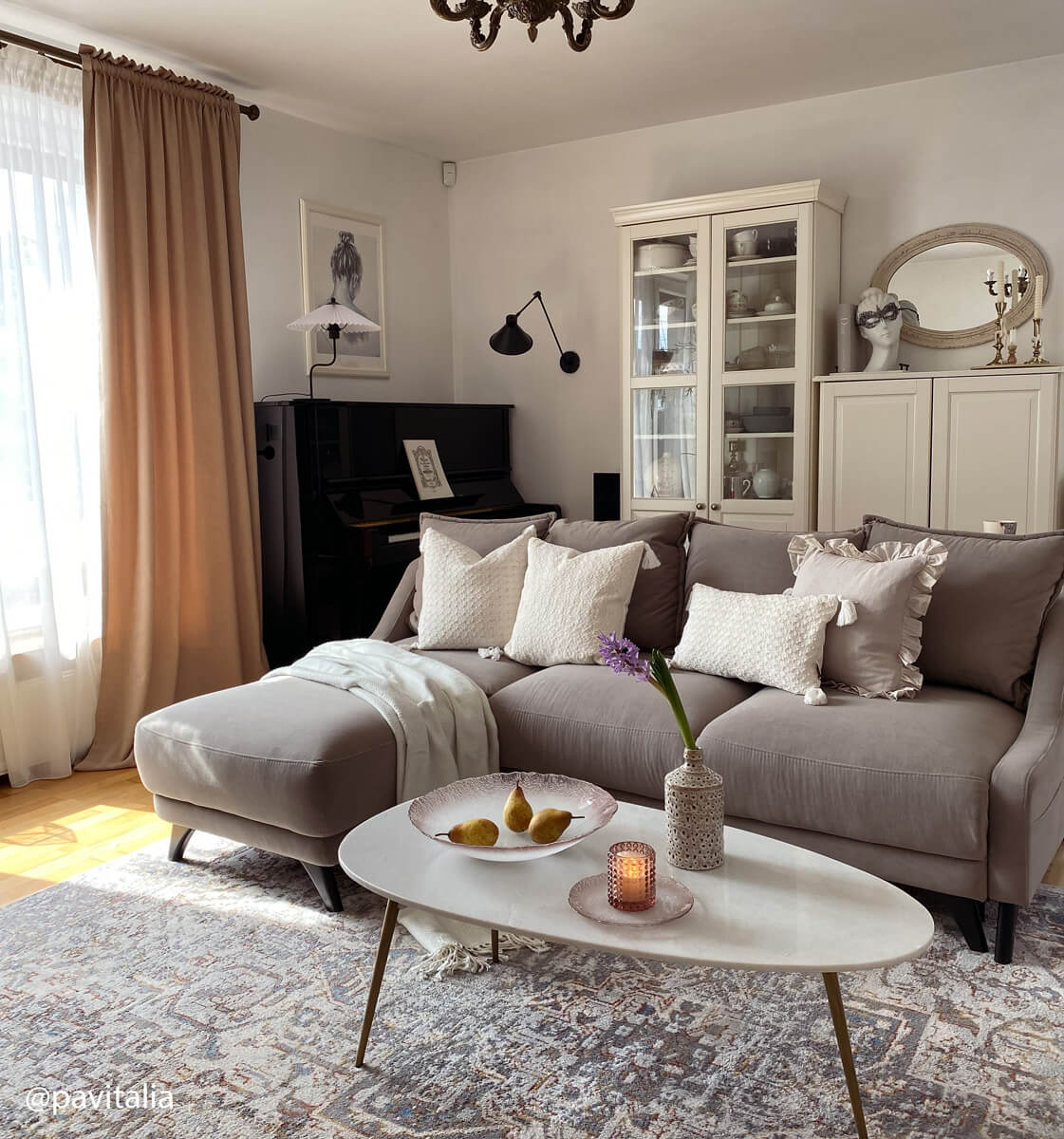 Beż i biel to para, którą z pewnością pokochają wielbiciele eleganckiej klasyki. Takie zestawienie mogą wybrać zarówno entuzjaści klasycznych aranżacji jak i podążający za najnowszymi trendami miłośnicy scandi boho. Beżowe dodatki doskonale ocieplą wnętrze sprawiając, że stanie się ono bardziej klimatyczne i przytulne. Jeśli marzy ci się taki salon z nutą boho koniecznie przejrzyj beżowe dodatki z naszej kolekcji SEVILLE. Miękkie koce, przyjemne w dotyku poduszki dekoracyjne zdobione frędzlami, puszyste dywany w kolorze beżu – dzięki tym dodatkom osiągniesz niezwykle przyjemny dla oka efekt. Z kolei, jeśli chcesz połączyć biel na ścianach z beżowymi dodatkami i nowoczesnym wystrojem, możesz wykorzystać np. poduszki dekoracyjne zdobione ciekawymi nadrukami. Wówczas wyrazistego charakteru wnętrzu możesz dodać wykorzystując także dodatki w kolorze czerni i złota.