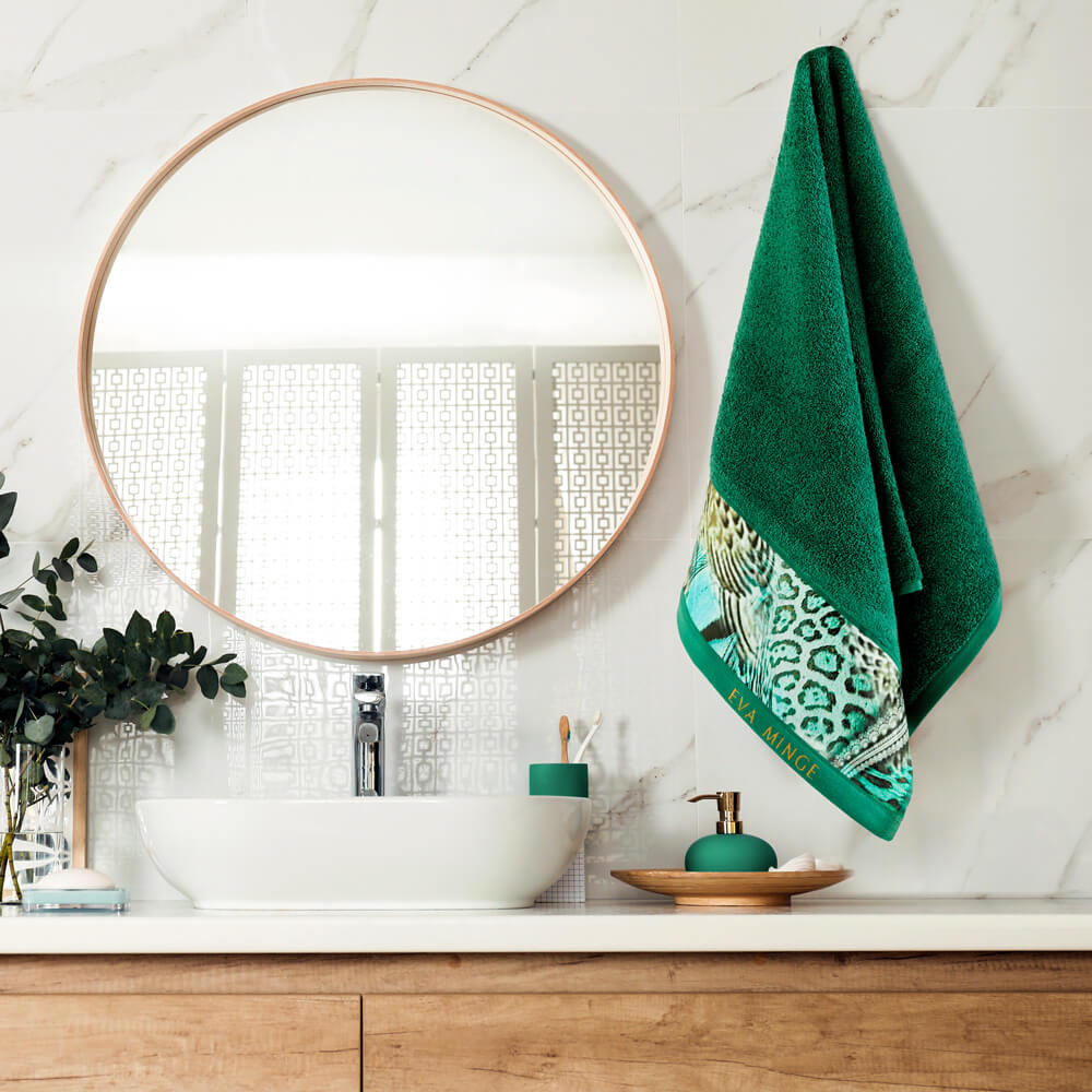 Pamiętaj, że nie tylko wieszak musi pasować do łazienkowej aranżacji, ale także ręczniki powinny z nią korespondować. Ręcznik jest bowiem dodatkiem nie tylko praktycznym. Potencjał dekoracyjny ręczników jest naprawdę ogromny. Ogromny jest też wybór ręczników w naszej ofercie. Znajdzie w niej zarówno zdobione fantazyjnymi, modnymi wzorami ręczniki z kolekcji Evy Minge, te bardziej klasyczne, jednokolorowe i wytłaczane, jak i ręczniki w stylu glamour, zdobione bordiurą z cyrkoniami.