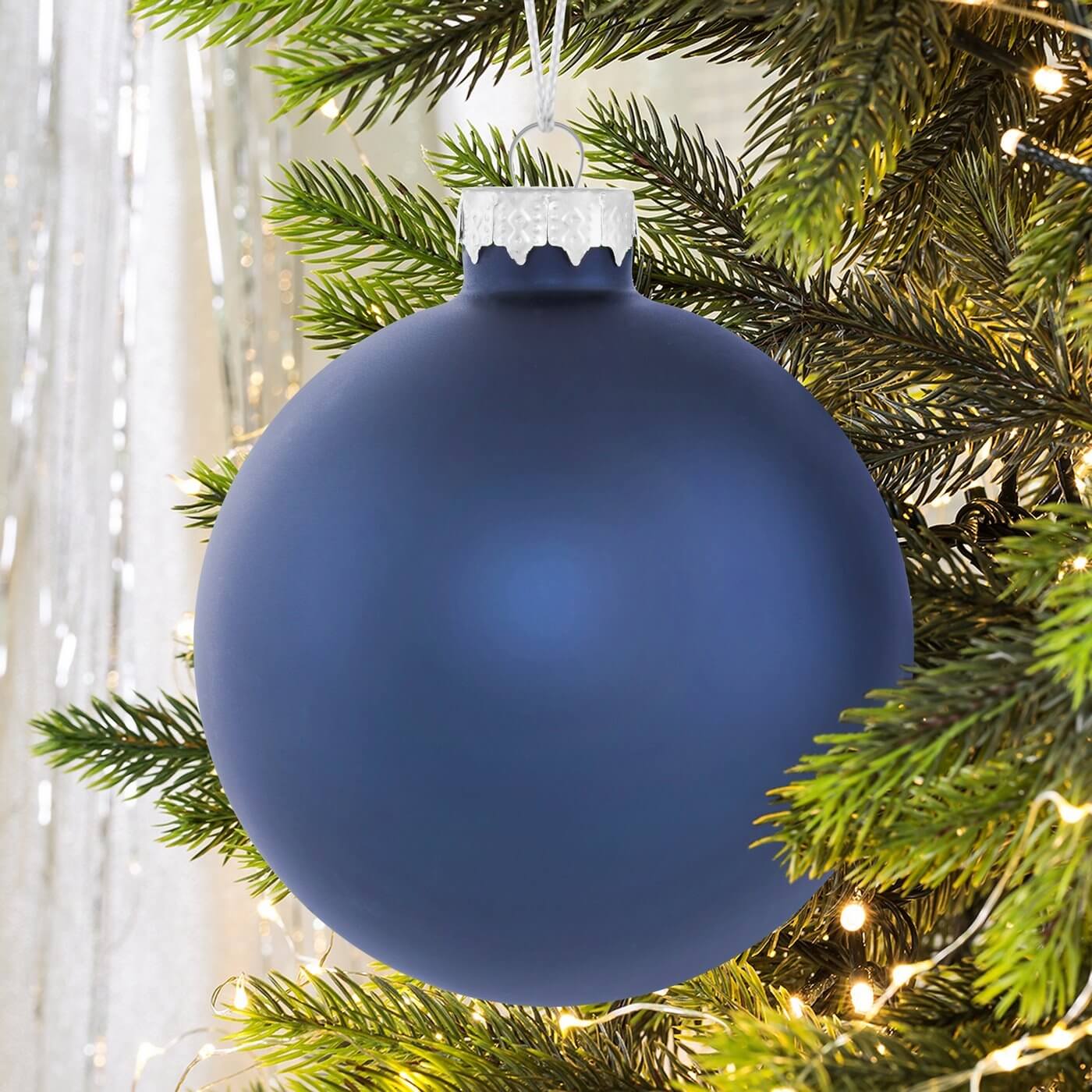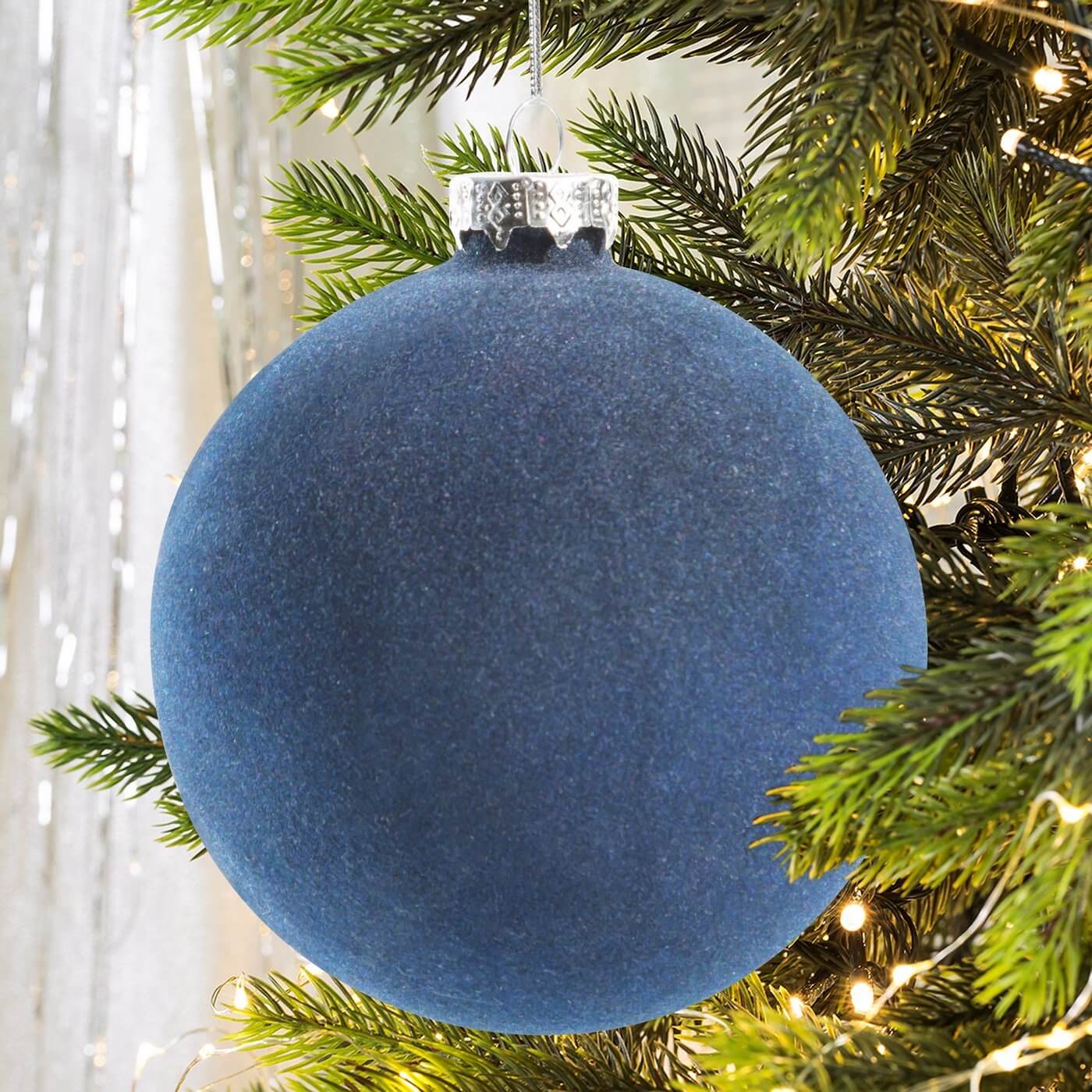Granatowa bombka choinkowa o matowej, welwetowej powierzchni