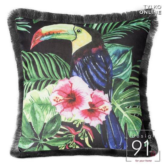 FRIDA poszewka welwetowa z tukanem i motywem tropikalnym