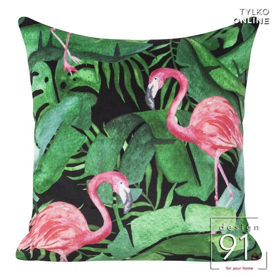 Poszewka TROPICAL z welwetu z nadrukiem we flamingi
