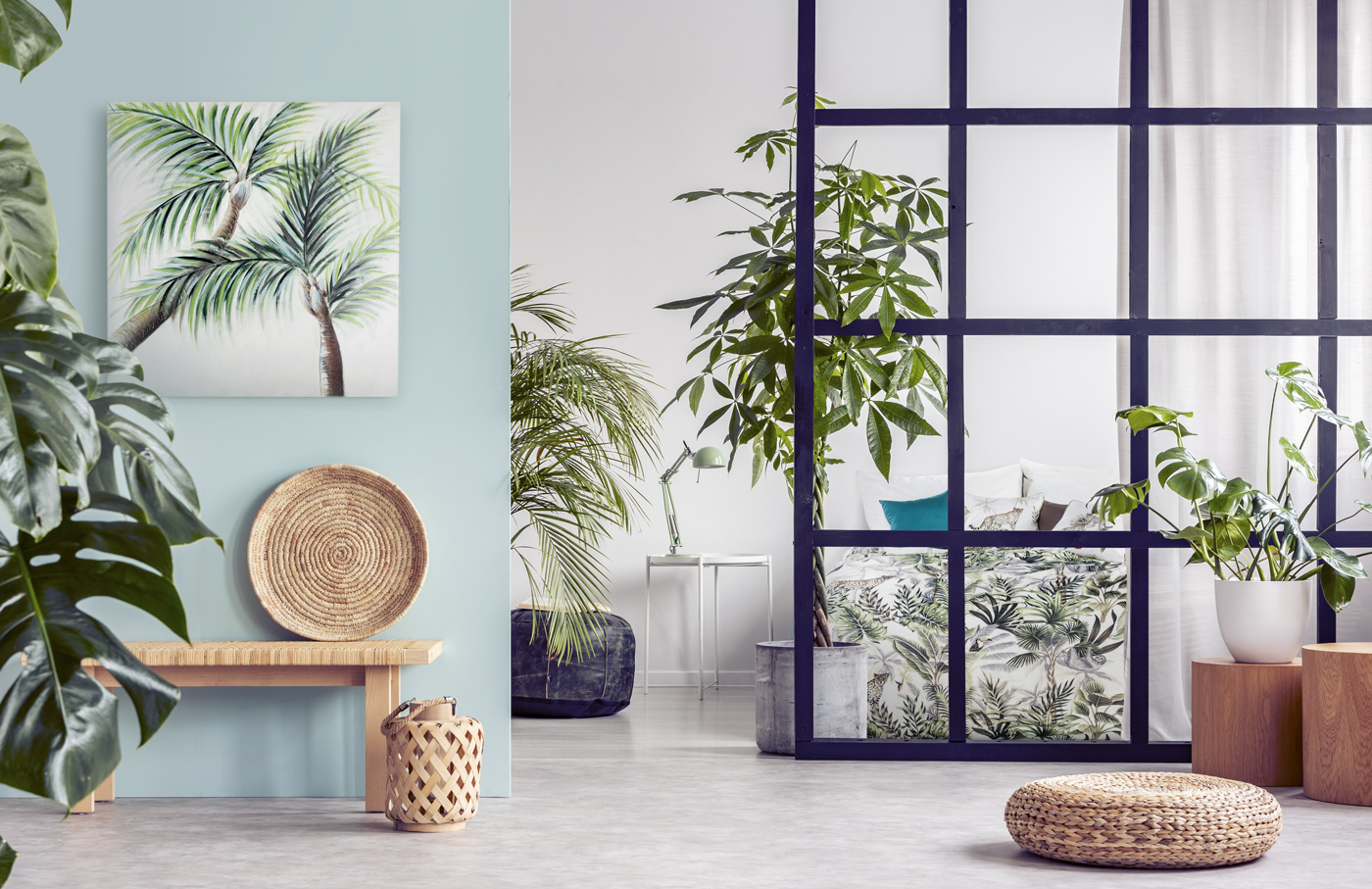 Całe pomieszczenie, mimo podziału, powinno zostać utrzymane w harmonii – zarówno stylistycznej, jak i kolorystycznej. Dobrze zatem jest wybrać jeden dominujący wzór bądź kolor i powtórzyć go w obu z wydzielonych stref. Np. jeżeli urządzamy salon z sypialnią, świetnym pomysłem jest zawieszona w salonowej części grafika z motywem, który pojawi się na pościeli w części sypialnej. Podobnie możemy podziałać z kolorem. Jeżeli w salonie zdecydujemy się np. na kanapę o tapicerce w wyrazistym kolorze, powtórzmy tę barwę aranżując sypialniane łóżko. Taka harmonia zaprezentuje się naprawdę stylowo, modnie i elegancko.