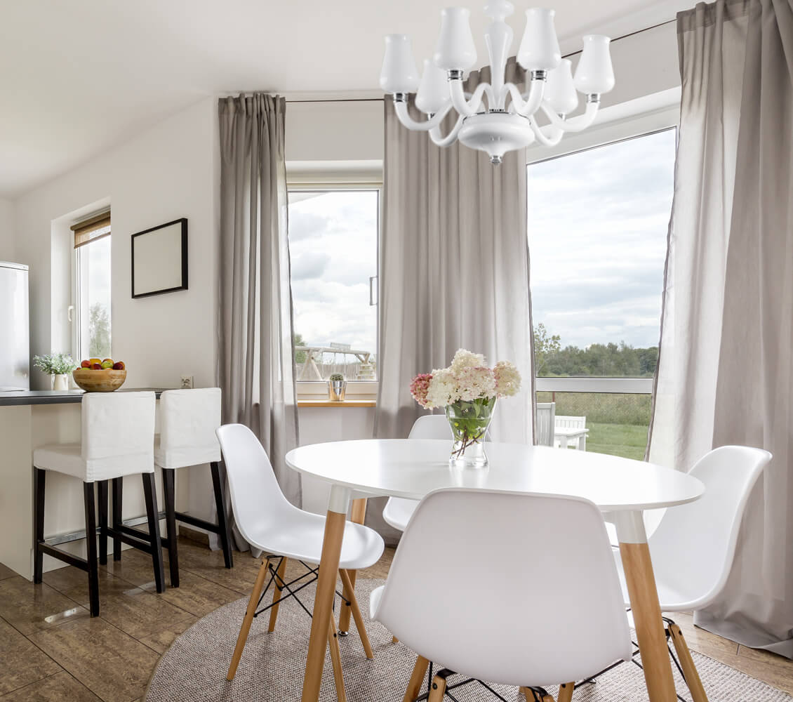 Jeśli decyzja o braku montowanego do ściany karnisza jest podyktowana małą ilością miejsca wokół okien, pamiętaj, że możesz wykorzystać szyny sufitowe. To doskonały pomysł we wnętrzach z ograniczonym metrażem. Wieszane na szynach sufitowych firany i zasłony sprawią, że twoje wnętrze będzie wydawało się wyższe, a dzięki temu bardziej przestronne. Dodatkowo szyna sufitowa nie ograniczy cennego miejsca na ścianach. Brak standardowego karnisza nie będzie wówczas stanowił żadnego problemu.