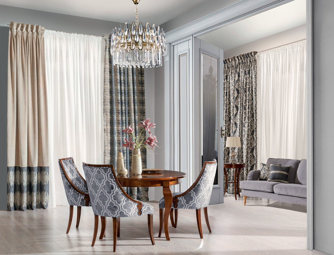 Dziś raczej nikt z nas nie zdecydowałby się na zastawienie całego salonu dużymi, ciężkimi meblami. Jeśli więc styl wiktoriański jest ci bliski, ale chcesz zachować przestronny charakter pomieszczenia, wybierz jeden wyrazisty mebel, który będzie pasował do stylu i przyciągał uwagę. Oryginalność stylu i jego niepowtarzalny charakter staraj się osiągnąć za pomocą innych dodatków. Z pomocą z pewnością przyjdą Ci tkaniny. W stylu wiktoriańskim doskonale zaprezentują się np. zasłony obficie udekorowane roślinnymi bądź ornamentowymi wzorami. Idealnie skomponują się też z takim wnętrzem tkaniny zdobione motywami w kolorze złota.