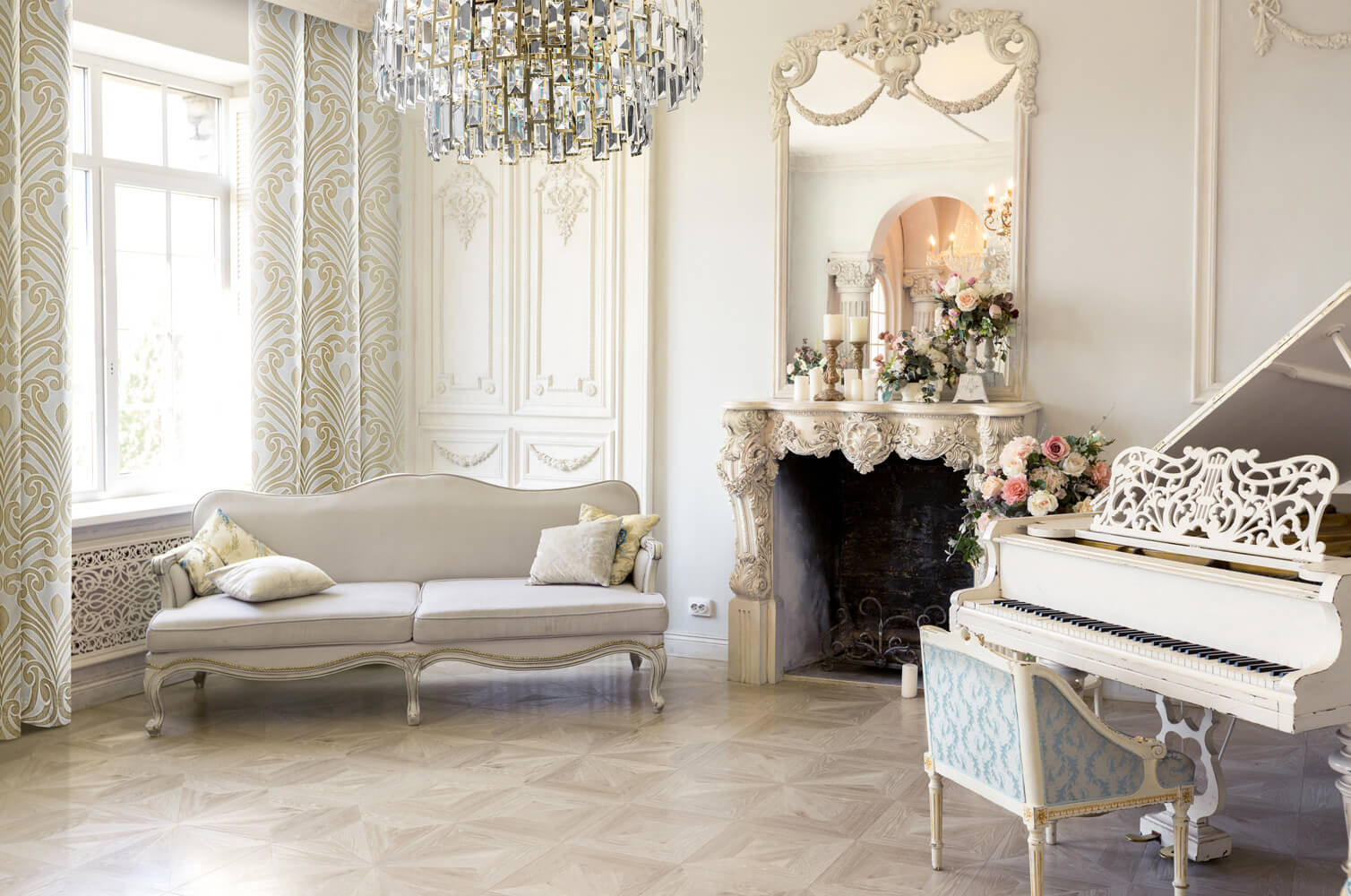 Wzory powinny pojawić się także np. na poduszkach dekoracyjnych czy dywanach. Nastrój we wnętrzach w stylu wiktoriańskim zbudujesz dzięki eleganckim, stylowym lampom. W takich aranżacjach nie może zabraknąć także oczywiście złota. Tutaj możesz wykorzystać różnego rodzaju figurki dekoracyjne, patery, świeczniki i wazony ze złotymi aplikacjami. Do dekoracji wnętrza możesz użyć też sztucznych kwiatów, z których stworzysz eleganckie kompozycje. Na ścianach powinny znaleźć się obrazy i lustra – najlepiej w bogato zdobionych ramach. Tym razem możesz dać upust swojej wyobraźni i na chwilę zapomnieć o zasadzie minimalizmu.