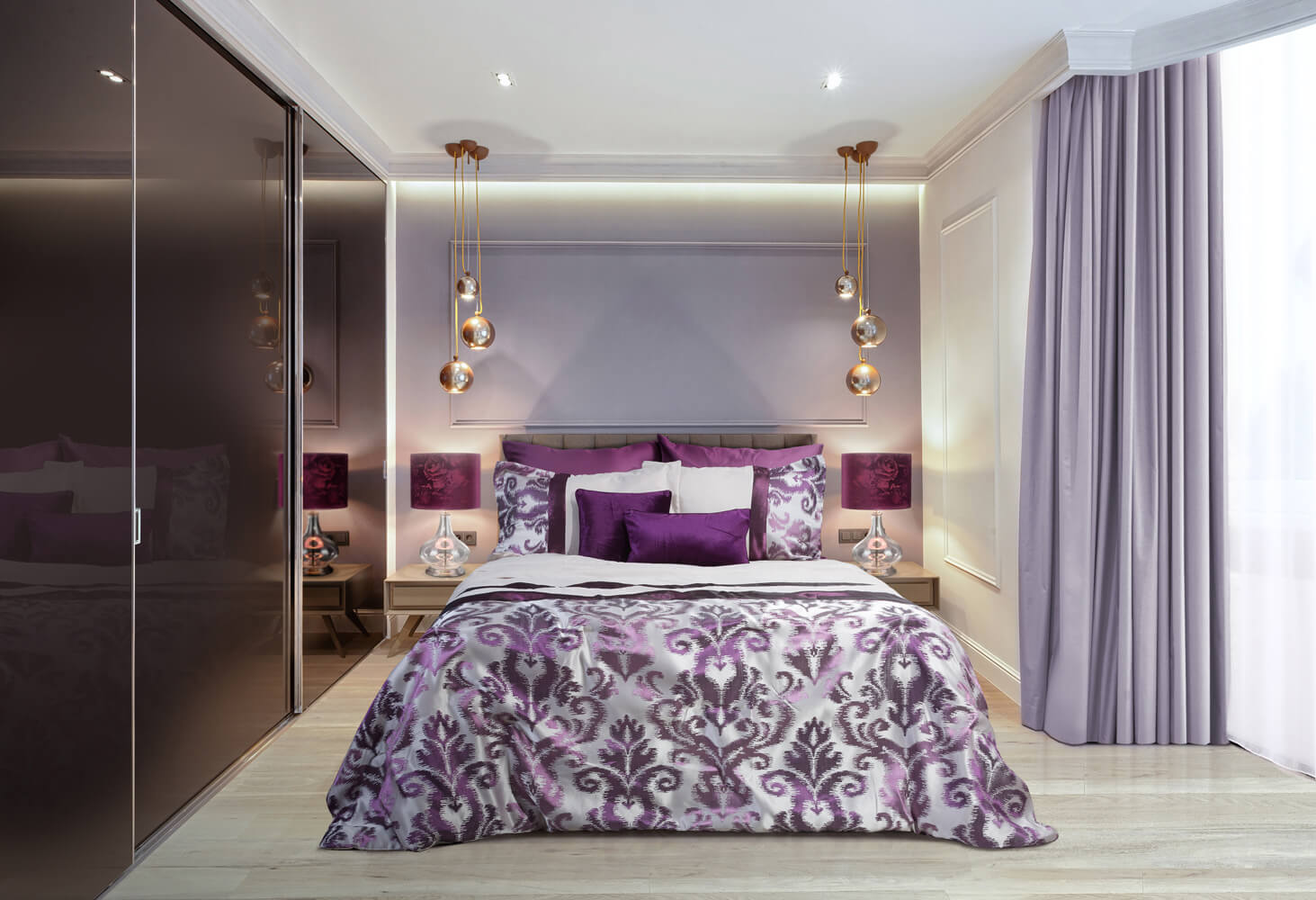 Fiolet w sypialni stwarza wrażenie elegancji, szyku i kobiecej wytworności. Filetowa paleta barw sprawdzi się więc w tym pomieszczeniu idealnie. Fioletowa sypialnia to prosty sposób na klimatyczne i pełne klasy wnętrza. Zobacz, jak urządzić fioletową sypialnię.