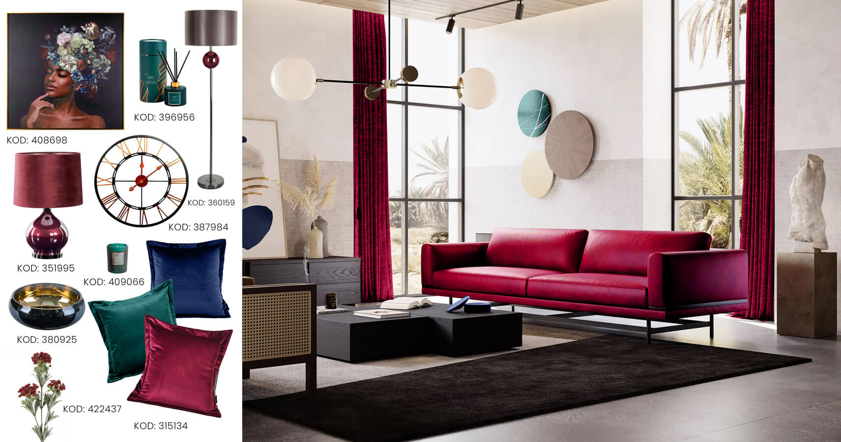 Czerwona kanapa jakie dodatki?