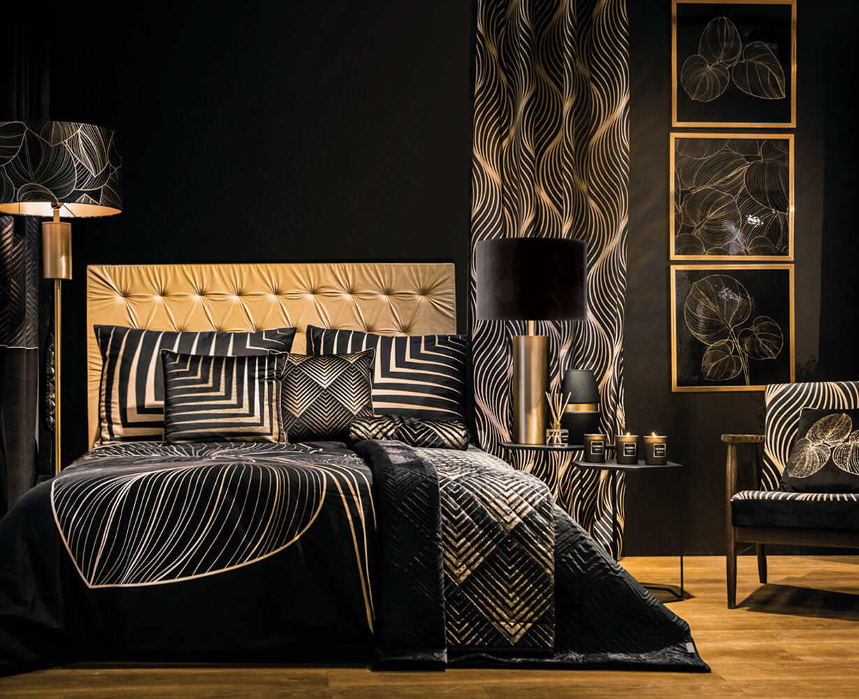 Z kolei w sypialni, w której króluje styl glamour warto zwrócić uwagę na lampy ze szklaną podstawą. Ciekawą propozycją są lampy ze szkła z efektem ombre. Szkło będzie cudownie odbijać światło, co dodatkowo doda blasku sypialni glamour. Jeśli chcesz wkomponować w taką stylizację wrażenie przytulności, sięgnij po lampy z eleganckim, welwetowym abażurem.