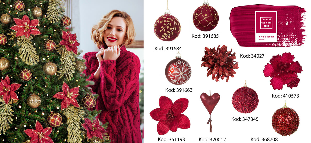 Zwycięski odcień możesz wprowadzić do wnętrz na kilka sposobów. Jeśli nie brak ci odwagi i lubisz podążać za trendami, możesz znaleźć miejsce dla Viva Magenta na ścianie. Kolor jest jednak dość intensywny, zatem radziłabym raczej pomalowanie nim jednej ze ścian we wnętrzu, a nie całego pomieszczenia. Bycie trendy nie musi jednak od razu wiązać się z remontem. Viva Magenta może bowiem pojawić się w twoim wnętrzu za sprawą dodatków. To dzięki nim w szybki i łatwy sposób odmienisz swój salon, sypialnię czy łazienkę. Zajrzyj do naszego sklepu i zobacz kolor roku 2023 w pięknych, stylowych i modnych dodatkach. A może już najbliższe święta chcielibyście zaczarować energią Viva Magenta?
