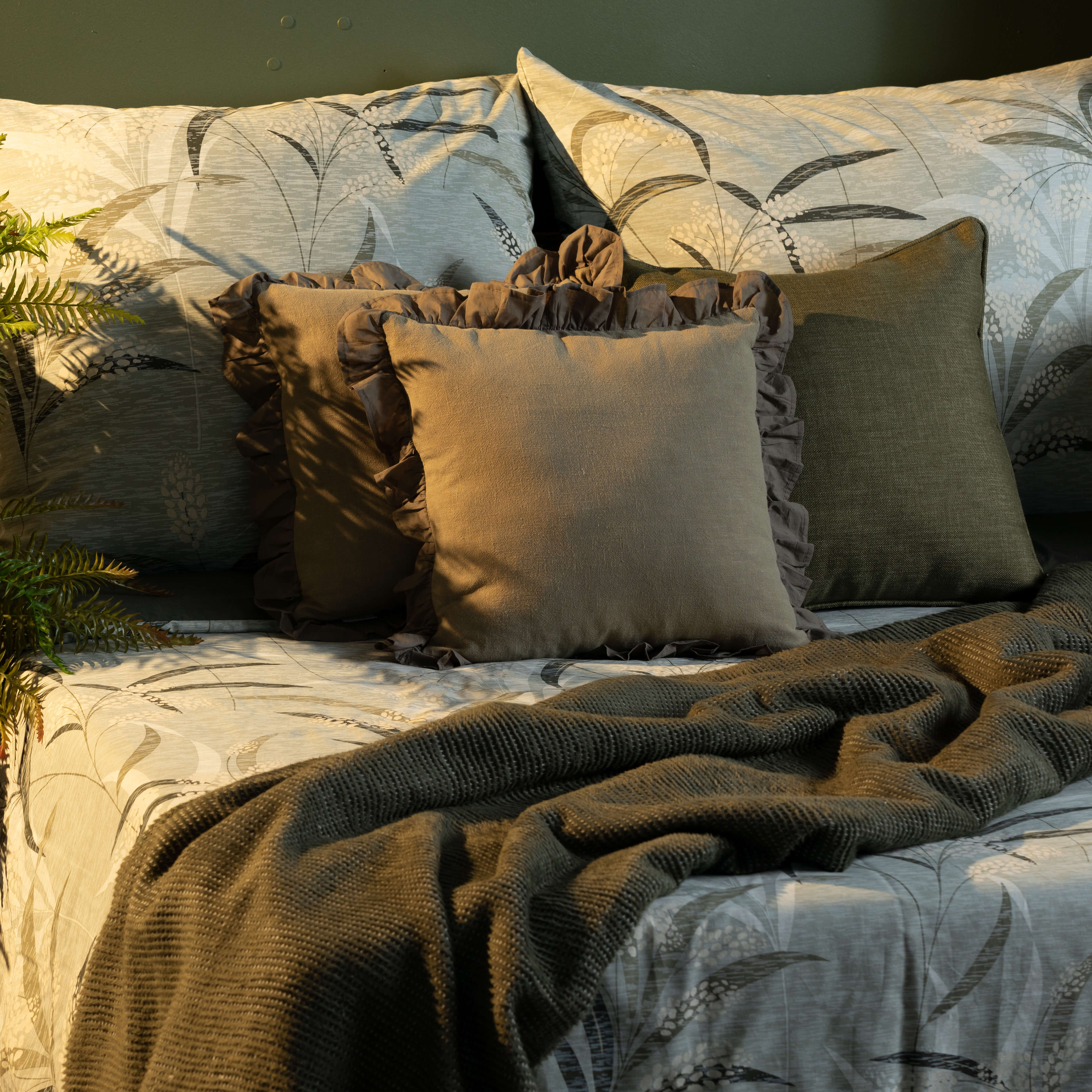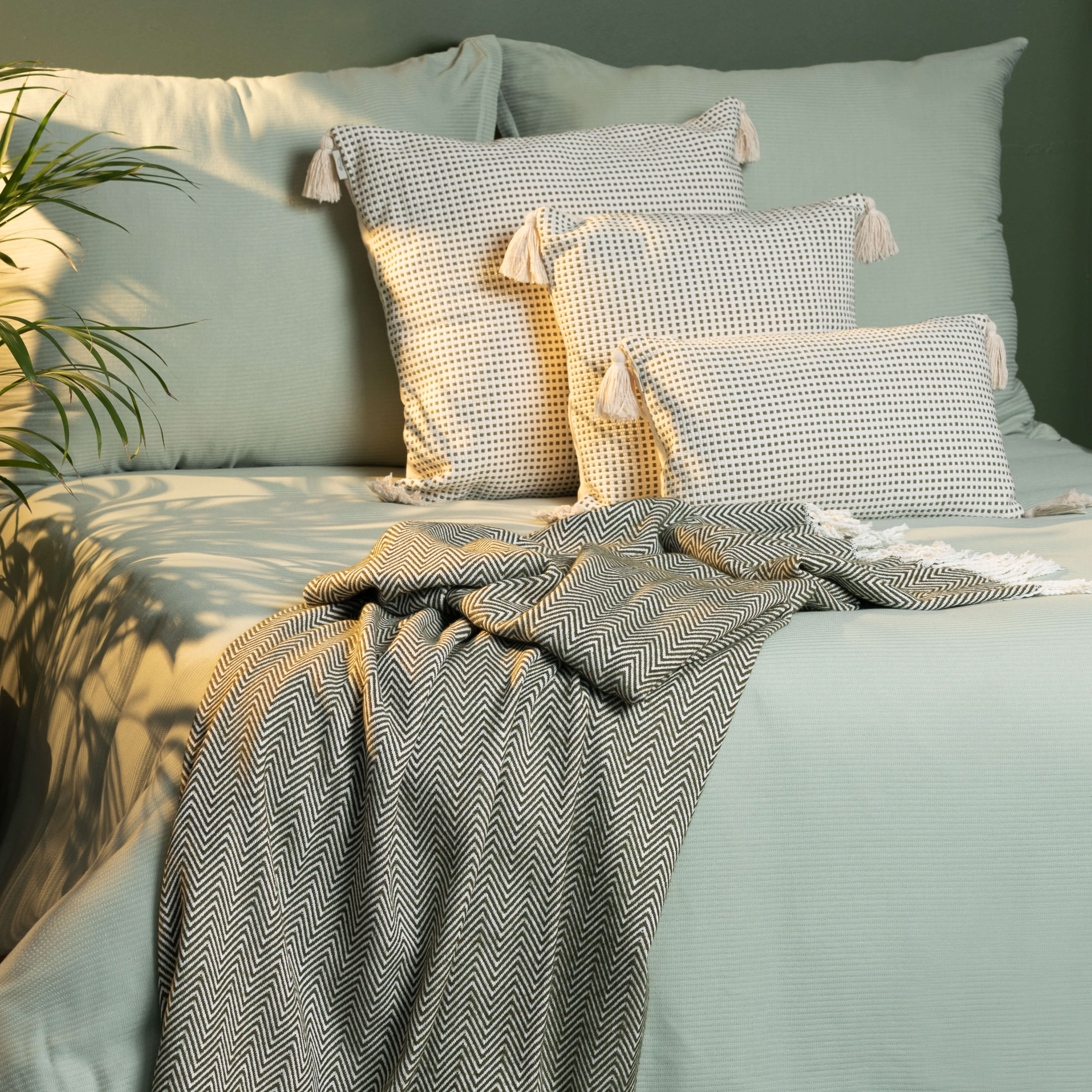 Kolory ziemi i kolekcja Montenegro to także doskonały pomysł na urządzenie przytulnej, klimatycznej sypialni. Chcąc poczuć się w swojej sypialni jak na bałkańskim wybrzeżu postaw na pościel z naturalnych tkanin w kolorze oliwkowej zieleni, turkusu czy subtelnego, rozbielonego błękitu. Możesz wybrać też pościel w jasnych kolorach zdobioną roślinnym wzorem. Do takiej aranżacji łózka dołóż miękkie poduszki dekoracyjne i narzutę z tkaniny o naturalnym splocie. Takie wnętrze dobrze jest też ocieplić nastrojowym światłem z lamp stojących czy świec. Warto także znaleźć w sypialni miejsce dla roślin o dużych, zielonych liściach. Poczucie bliskości natury każdego wieczoru z pewnością wprawiać nas będzie w przyjemny nastrój i ułatwi spokojny, zdrowy sen.