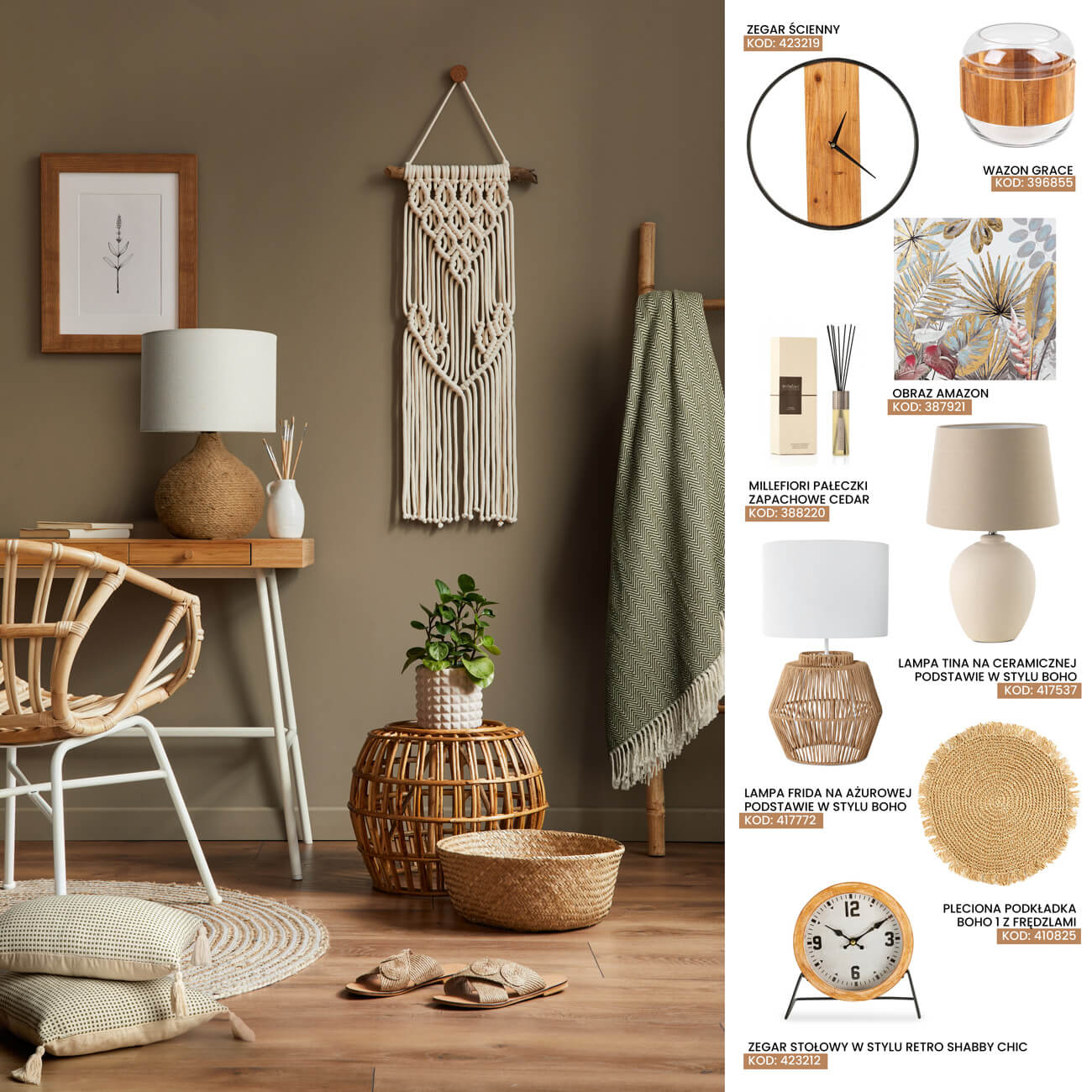 Przestrzeń do pracy nie powinna kojarzyć się z ciasną i ciemną klitką. Przestrzeń powinna sprawiać wrażenie przestronnej i jasnej. Najlepiej więc wykorzystać pastelowe, uniwersalne, jasne barwy i zadbać o odpowiednią ilość światła – naturalnego i sztucznego. Ważne, by stworzyć miejsce, które będzie przyjazne zarówno do pracy, jak i wypoczynku – zwłaszcza, kiedy biuro nie jest osobnym pomieszczeniem, ale np. częścią sypialni czy salonu. Jak sprawić, aby ta przestrzeń była wygodna i funkcjonalna? Małe biuro można zainstalować w rogu pokoju lub oddzielić strefę do pracy poprzez parawan, meble lub wysokie kwiaty doniczkowe. Bardzo dobrym rozwiązaniem będzie wykorzystanie stylu boho, do stworzenia spójnej przestrzeni dla pracy i wypoczynku.