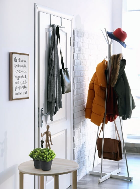 Warto również zadbać o taki element wyposażenia jak siedzisko, które przyda się podczas zakładania butów. Może to być pufa, taboret lub ławka, najlepiej w oryginalnym kolorze lub o designerskich motywach i barwnych wzorach. Taki mebel z pewnością sprawi, że przedpokój będzie stylowy.