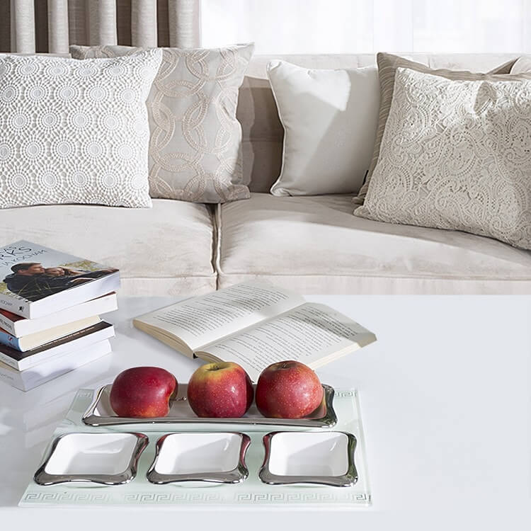 We wnętrzach w stylu klasycznym najpiękniej będzie wyglądać patera ze zdobionymi nóżkami i dekoracyjnymi uchwytami – koniecznie ustawmy ją w towarzystwie srebrnej tacy i gustownych półmisków.