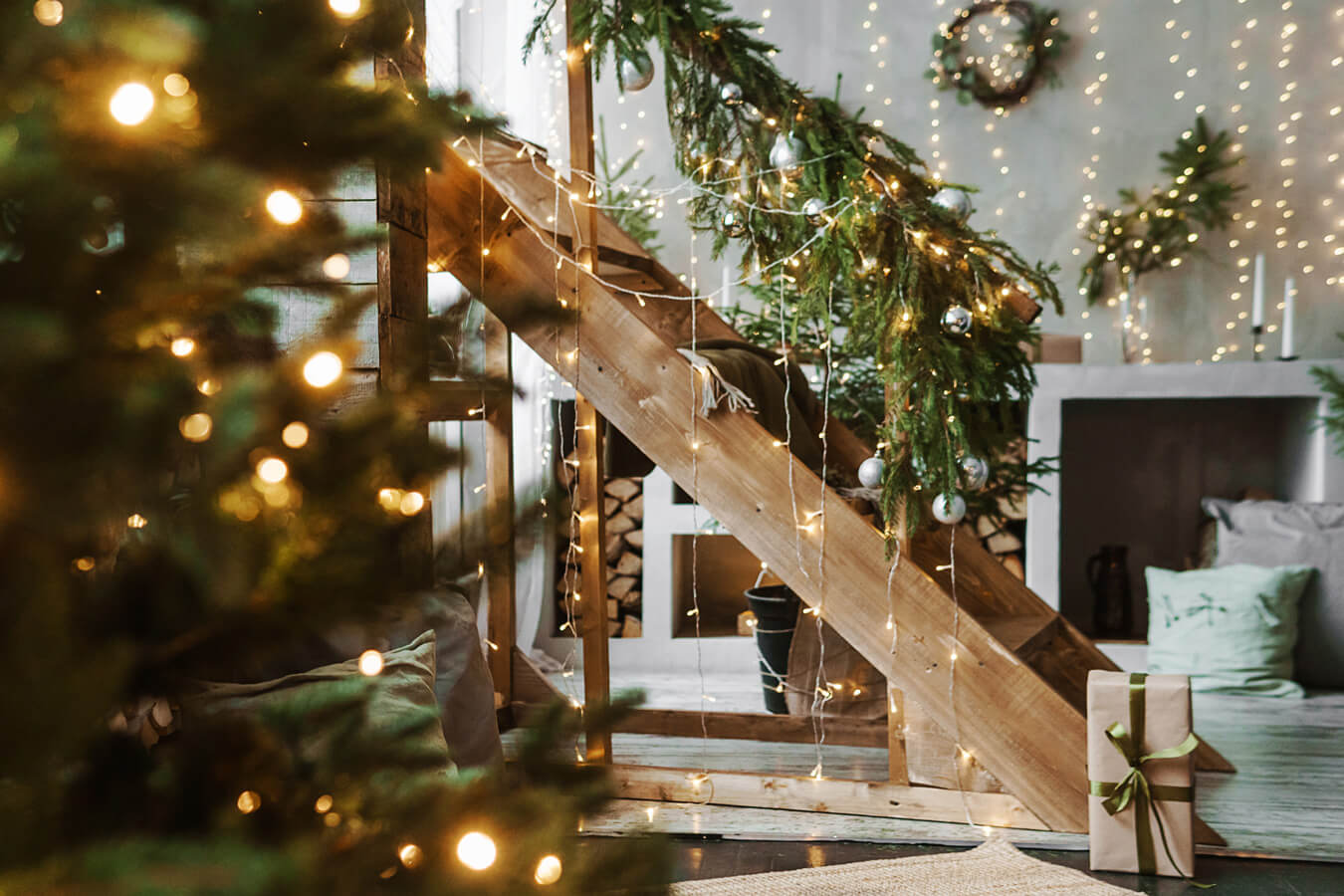 Jeśli masz sznury niewykorzystanych lampek, możesz udekorować nimi pokój na wiele sposobów. Możesz rozłożyć je luźno na kominku, półkach, opleść nimi zielone girlandy czy wianki. Jeśli lubisz naturalne dekoracje w klimacie rustykalnym, ciekawym pomysłem jest oplecenie lampkami naturalnych, grubych sznurów i rozwieszenie ich między ścianami w pokoju.
