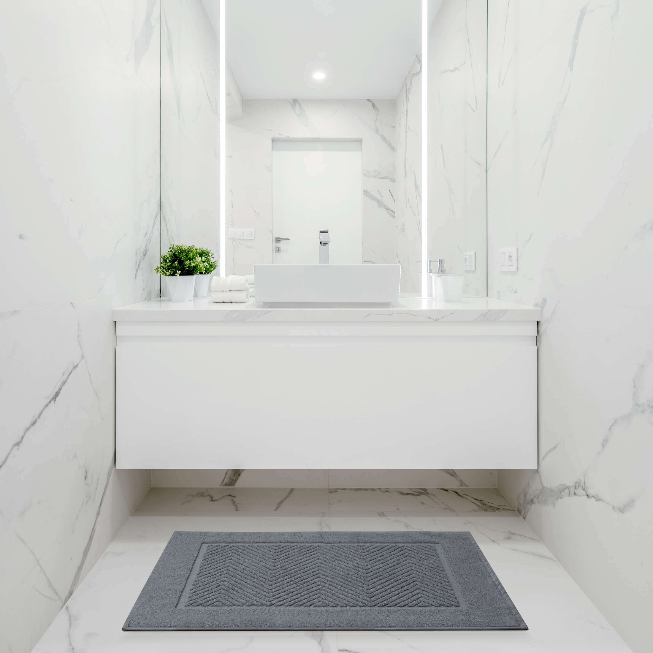 Najlepszym sposobem na optyczne powiększenie każdego wnętrza jest wykorzystanie w nim jasnych barw. Jasne kolory w łazience powinny znaleźć się zarówno na ścianach jak i podłodze. Jasne nie oznacza tylko białe. Równie dobrym wyborem będą chłodne odcienie błękitu, pudrowego różu, zieleni, szarości, a także gres o delikatnej marmurkowej lub cieniowanej powierzchni. Takie barwy sprawią, że łazienka stanie się jednolita, i optycznie zyska na wielkości, dodatkowo nadadzą pomieszczeniu przyjemny subtelny charakter. Do takich kolorów pasują białe lub jasne drewniane meble. Łazienka zyska na otwartości oraz lekkości. Charakteru całości dodadzą ciemniejsze akcenty. Jakie? Sprawdzamy!