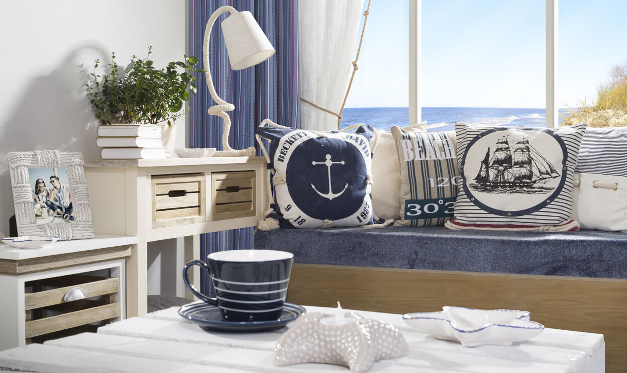 Urokliwy klimat relaksu podkreślą miękkie poduszki ułożone gęsto na kanapie. Tu nie musisz się ograniczać – im więcej, tym lepiej. Pięknie prezentować się będą poduszki o różnych strukturach, w jasnych, pastelowych kolorach. Możesz zestawić je z oryginalnymi poduszkami wykorzystującymi marynistyczne motywy. Moim numerem jeden w tej stylizacji są poduszki i poszewki o strukturze futra – przyjemne w dotyku, puchate i delikatne. Na kanapie nie może też oczywiście zabraknąć eleganckiego, miękkiego koca, którym przyjemnie okryjemy się podczas leniwego wieczoru w salonie. Doskonałym uzupełnieniem stylizacji będzie puszysty dywan położony na podłodze.