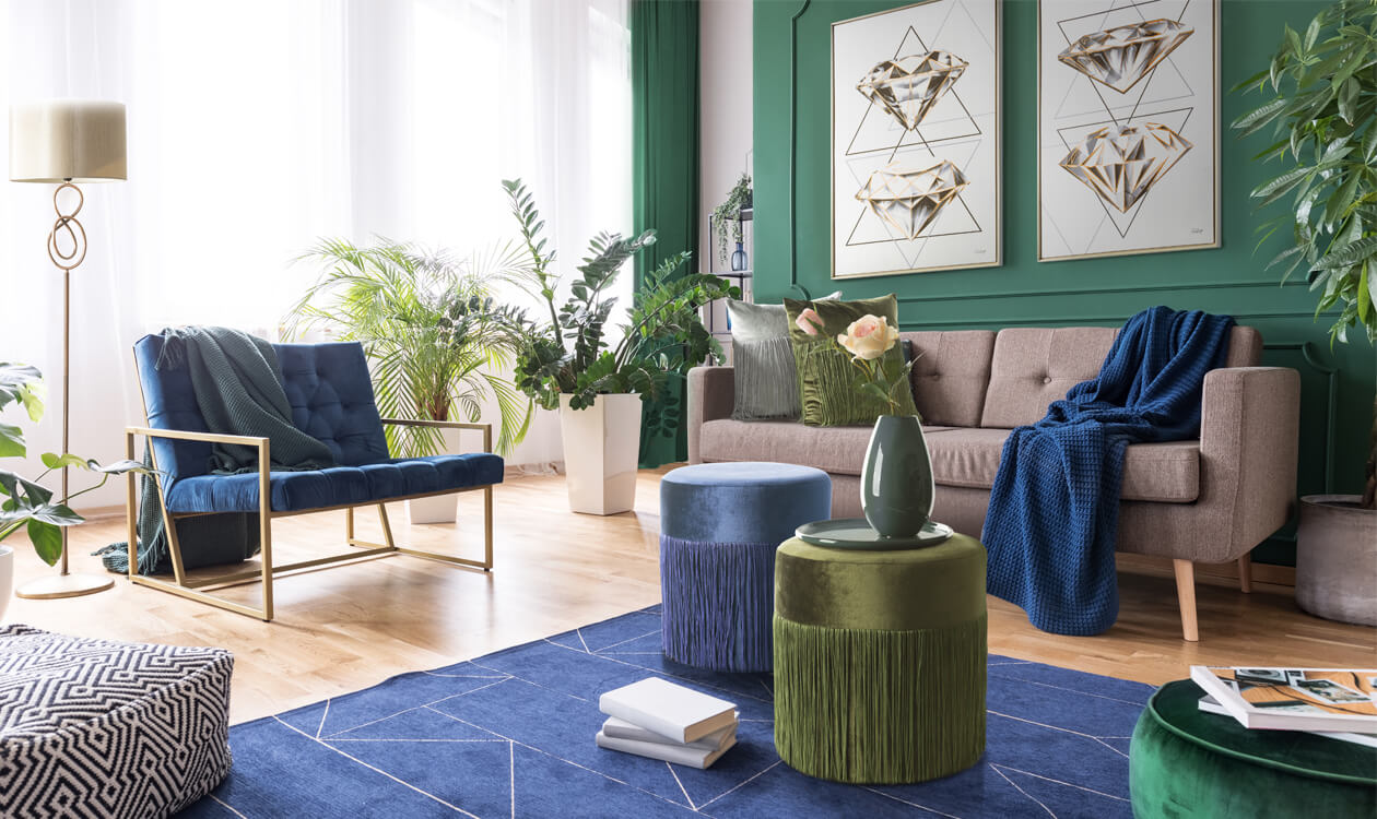 Według mnie najwytworniej jednak szmaragdowy zaprezentuje się jako dominujący kolor wystroju modnego salonu. Możesz postawić na jeden główny mocny akcent w kolorze szmaragdowym, jak np. pomalowanie jednej ze ścian farbą w tym odcieniu czy wybrać mebel wypoczynkowy obity tapicerką w tym kolorze, albo zestawić ze sobą dodatki w różnych odcieniach szmaragdów. Szafirowa dekoracyjna pufa, narzuta na łóżko, koc czy zasłony dodadzą wnętrzu elegancji i wyrafinowanego stylu. Decydując się na dekorację okna z zasłonami w tym kolorze, postaw na szlachetne materiały.