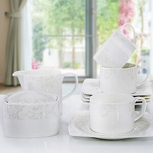 Przede wszystkim pomyśl o tym, ile osób będzie korzystać z wybranego przez Ciebie serwisu obiadowego. Standardowy serwis przeznaczony jest dla dwunastu lub dwudziestu sześciu osób. Do tego warto zakupić do kompletu wazę, półmiski, sosjerkę, salaterkę oraz filiżanki. Jeżeli nie posiadasz aż tak licznej rodziny lub nie potrzebujesz aż tak wielu elementów, spokojnie znajdziesz serwisy dedykowane sześciu osobom.