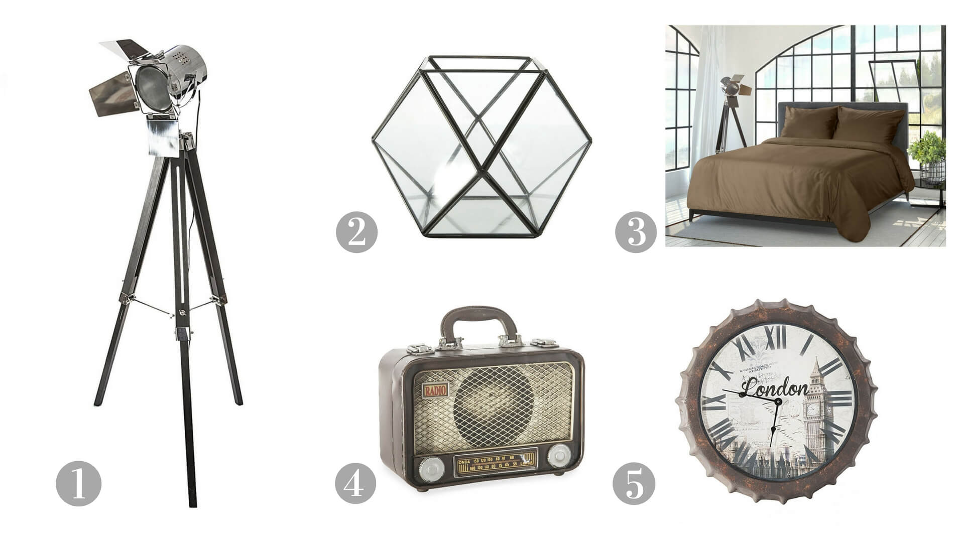 1. Lampa dekoracyjna Jori 2. Świecznik dekoracyjny Diament 3. Komplet pościeli NEW 4. Kuferek dekoracyjny radio 5. Zegar ścienny city