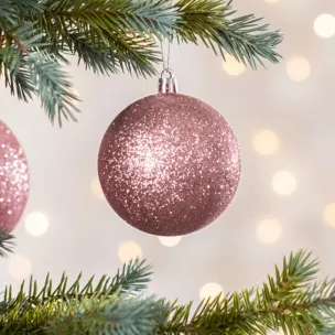 Bombka choinkowa oprószona lśniącymi drobinkami brokatu, zjawiskowo mieni się w świetle choinkowych lampek.  Różowy kolor kontrastuje  z zielonymi gałązkami świątecznego drzewka, a nietłukący materiał, z którego została wykonana, zapewnia bezpieczeństwo i trwałość ozdoby. Dobierz pozostałe ozdoby z szerokiej palety świątecznych dodatków i ciesz się wyjątkowym nastrojem w Twoim wnętrzu. Życzymy, by nadchodzące Święta, za sprawą wyjątkowych dekoracji i ozdób, były czasem niezwykłej  atmosfery.
