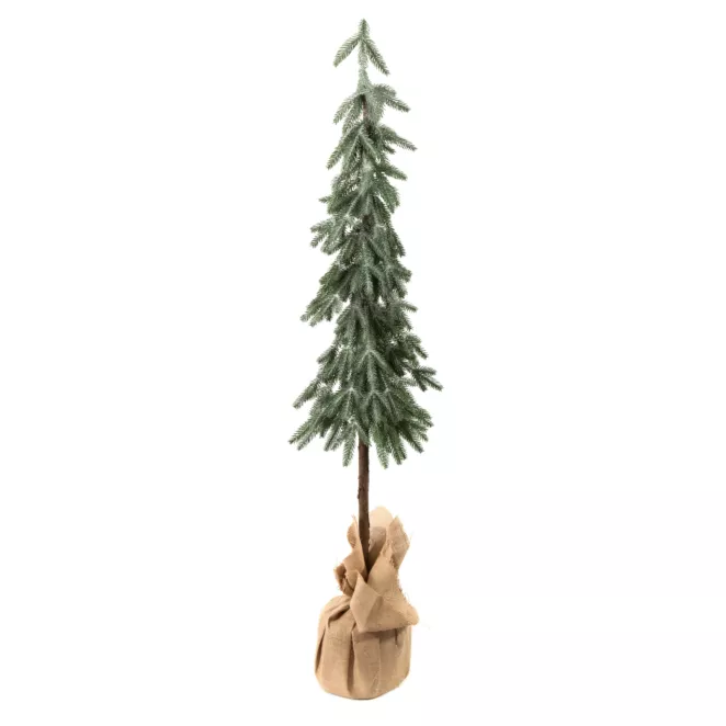 7. Drzewko choinkowe SLIM ośnieżone z dekoracyjną donicą owiniętą workiem jutowym 90 cm