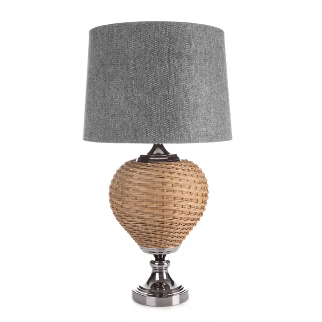 3. Lampa stołowa do pokoju srebrna ADELINE z lekko dymionego szkła i matowym abażurem