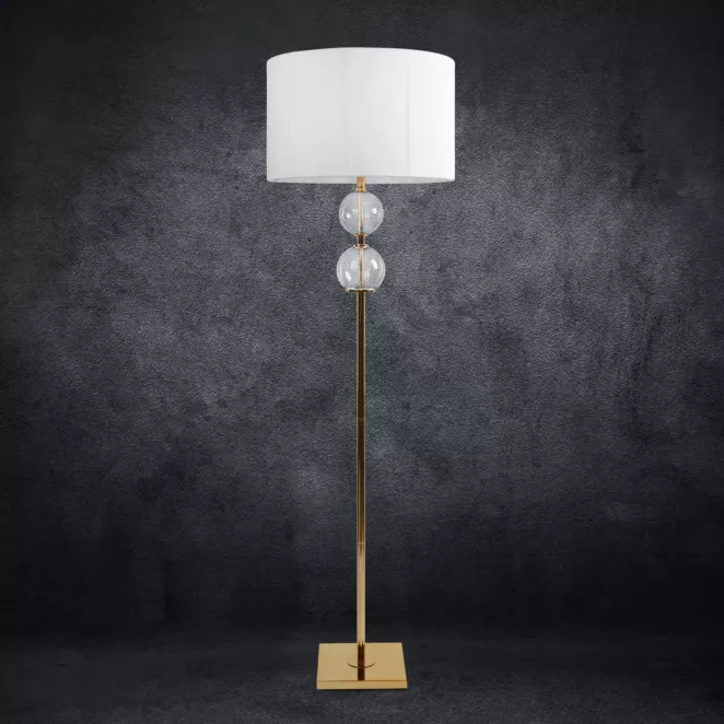 13. Lampa stołowa biało, złota SANNY z podstawy z szklanych bombek