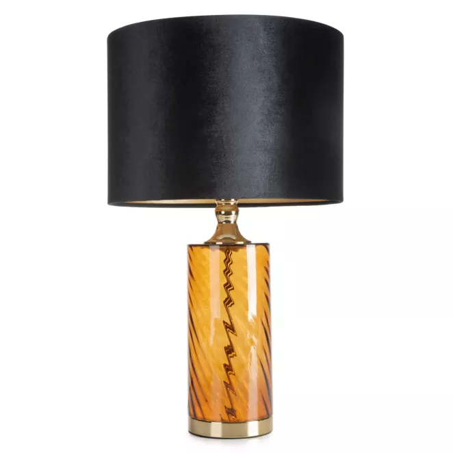 16. Lampa stołowa czarna NIKOL z szklaną podstawą i welwetowym abażurem