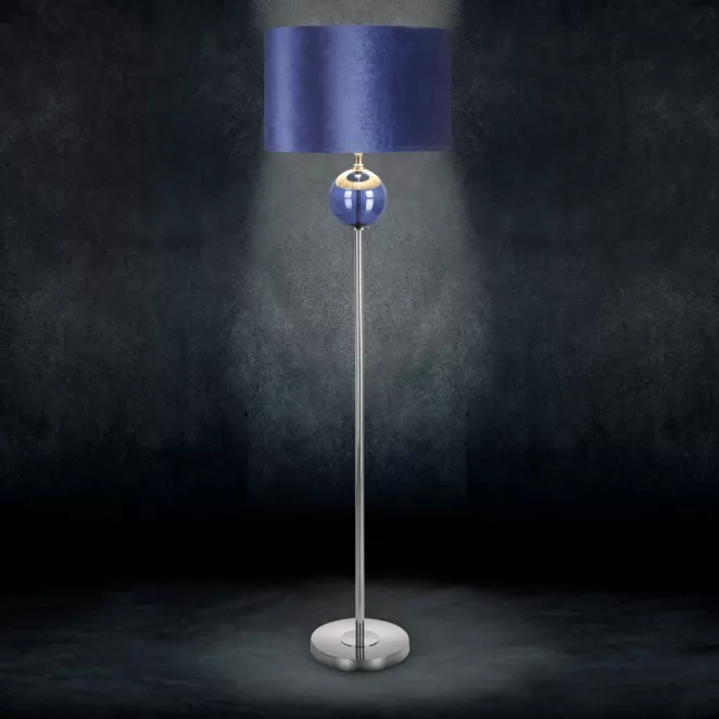 19. Lampa stojąca do pokoju czarno, złota LEONA z welwetowym abażurem