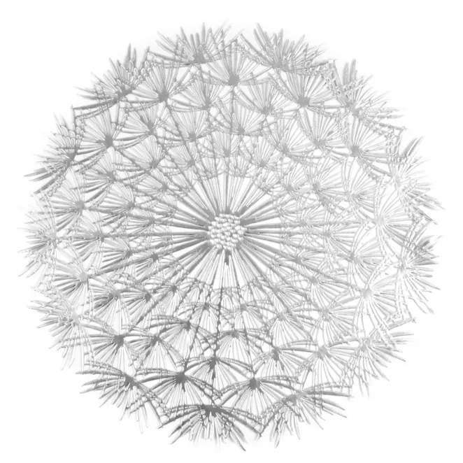 14. Podkładka okrągła na stół srebrna średnica 38 cm SUZI z ażurowym wzorem w formie dmuchawca