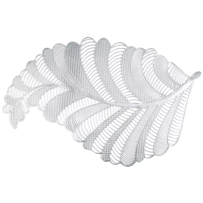 16. Podkładka na stół srebrna 30 x 45 cm PETAL z ażurowym wzorem liścia