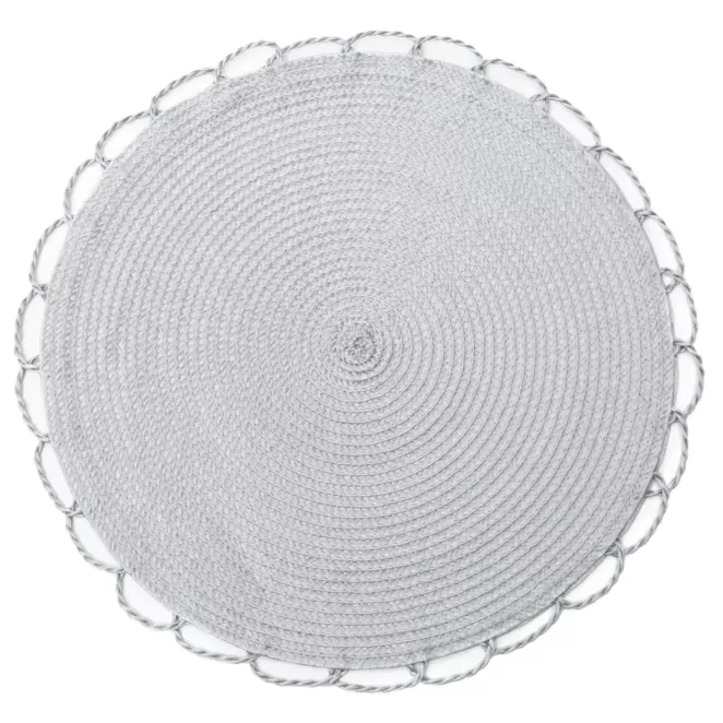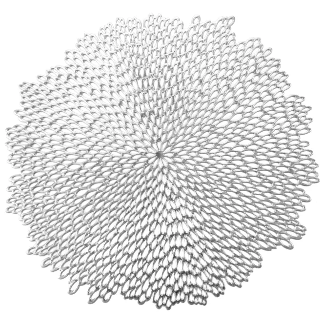 22. Podkładka okrągła na stół srebrna średnica 38 cm LINDA z delikatnie ażurowym wzorem