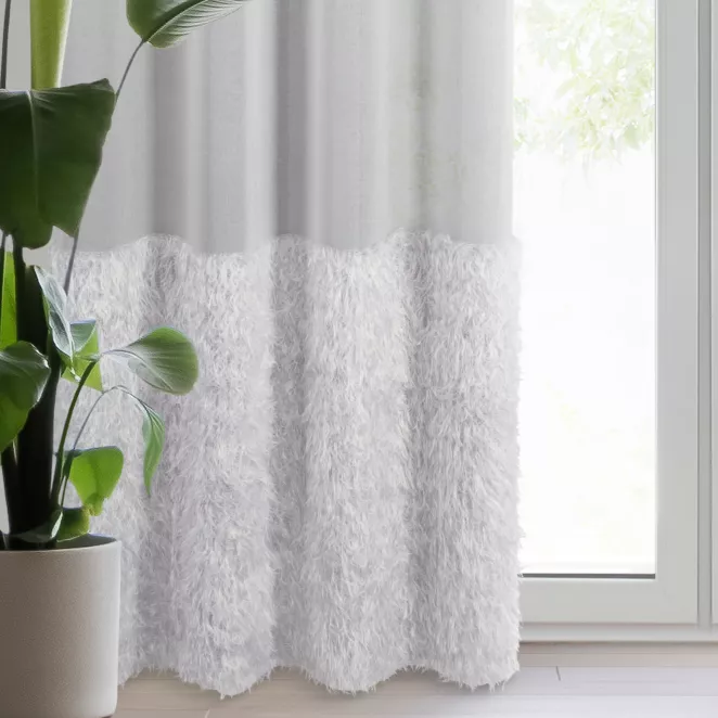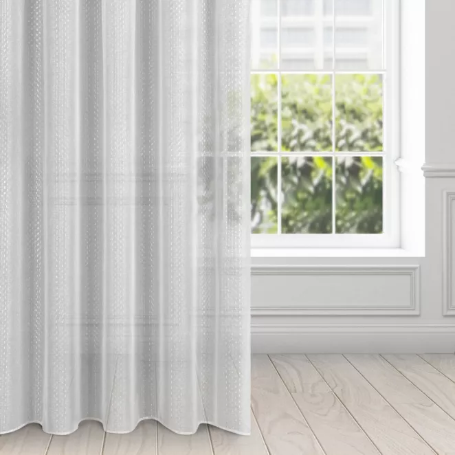 2. Firana biała o strukturze drobnego deszczyku wzór poziomy 300x270 cm taśma REBECCA