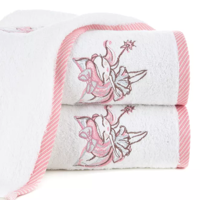 1. Ręcznik kąpielowy dziecięcy 50x90 cm bawełniany kolor różowy z aplikacją uroczego kotka 450 g/m2 BABY 72