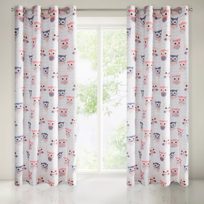 1. Zasłona biało beżowa zdobiona nadrukiem róż 140x250 cm złote przelotki - AVANI