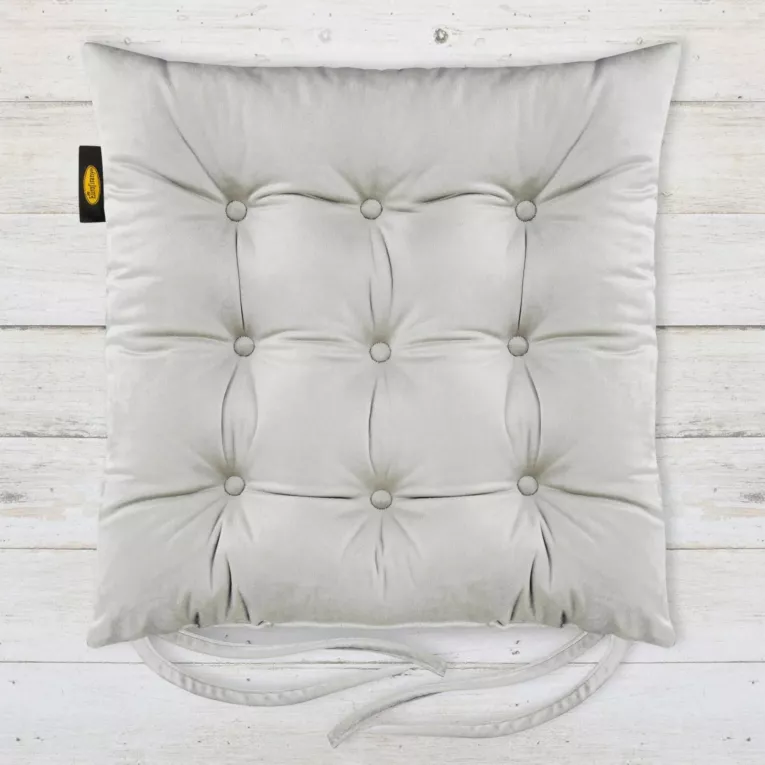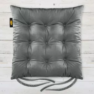 Poduszka na krzesło 40 x 40 x 6 cm dwustronna welwetowa jasnostalowa z dziewięcioma pikowaniami