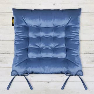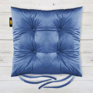 Poduszka na krzesło dwustronna 40 x 40 x 6 cm welwetowa chabrowy z dziewięcioma pikowaniami