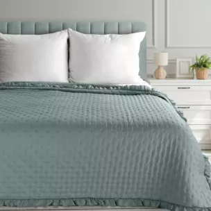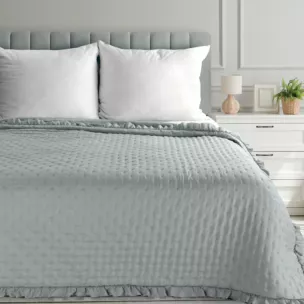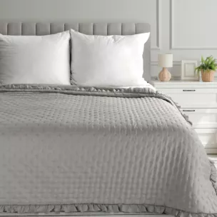 Narzuta srebrna 200x220 cm obszyta falbaną pikowana techniką hot press LIBI 3 Eurofirany Classic