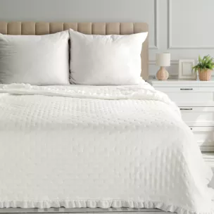 Elegancka narzuta pikowana metodą hot press to idealne połączenie stylu i komfortu. Subtelny, drobny wzór nadaje jej nowoczesnego charakteru, a delikatna falbana na brzegach wprowadza nutę romantyzmu i lekkości. Wykonana z miękkiej mikrofibry, jest niezwykle przyjemna w dotyku, a jednocześnie łatwa w pielęgnacji. Doskonale sprawdzi się zarówno w klasycznych, jak i nowoczesnych wnętrzach, nadając sypialni przytulnego klimatu.
