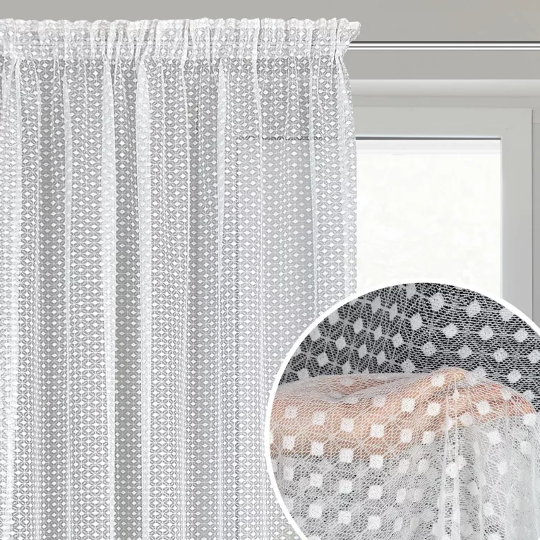 Firana biała z drobnym wzorem geometrycznym 140x270 cm taśma ALAYA