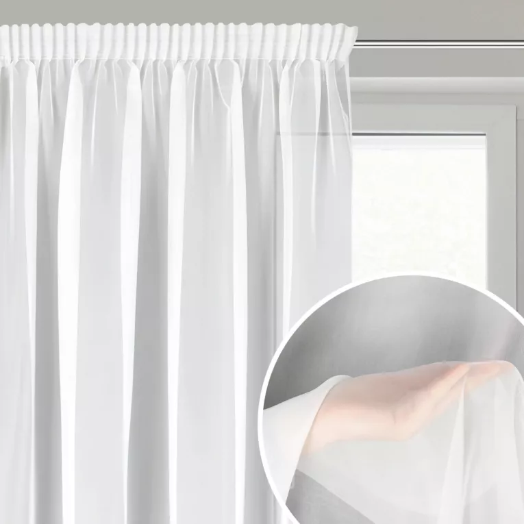 Firana biała z gładkiego matowego woalu 300x300 cm taśma LUCY