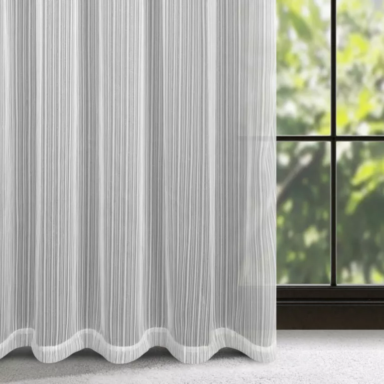 Firana biała z tkaniny w prążki przeplatane błyszczącą nicią 140x270 cm taśma NOELIA