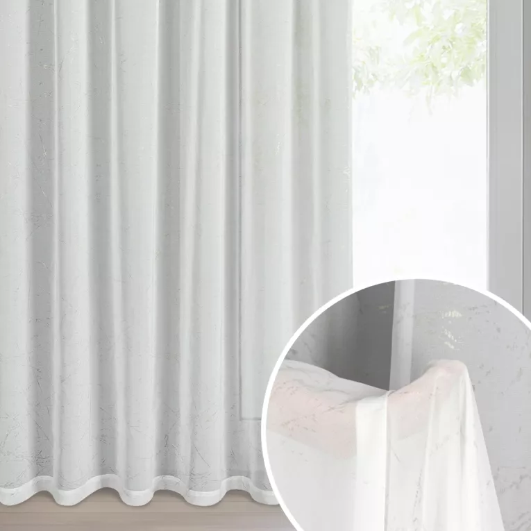 Firana biało, szampańska zdobiona marmurkowym nadrukiem 140x270 cm taśma HERA