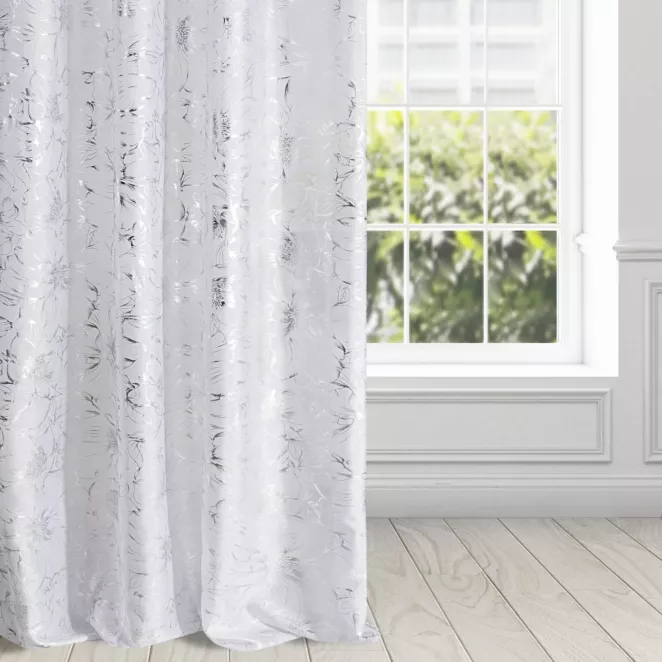 7. Firana biała z szyfonu zdobiona aplikacją 3D w róże 140x250 cm przelotki - ROSES8 - Eva Minge