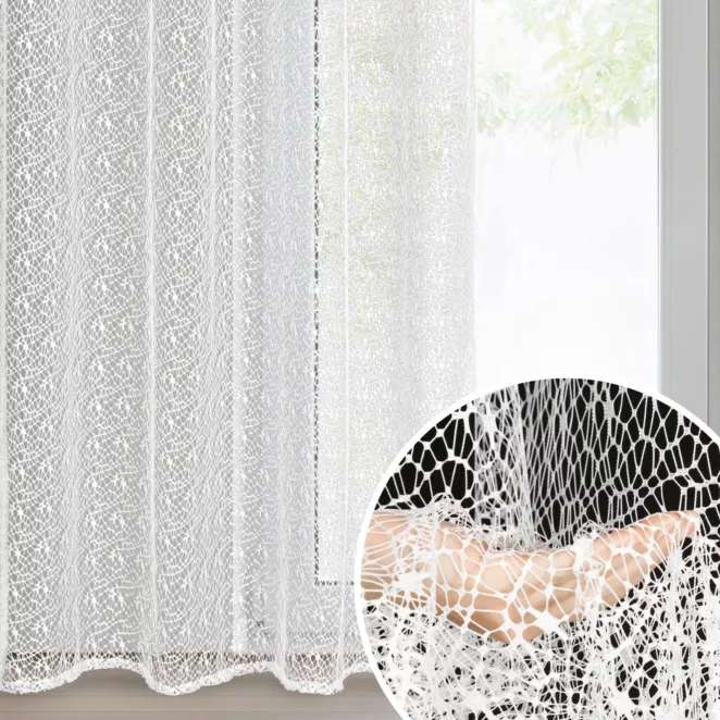 4. Firana biała z siateczki z moherową nicią 140x250 cm przelotka - KLOE