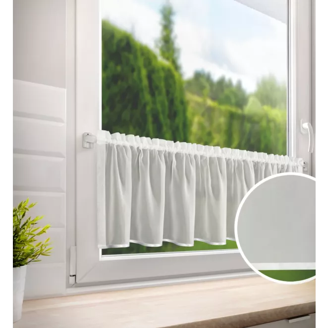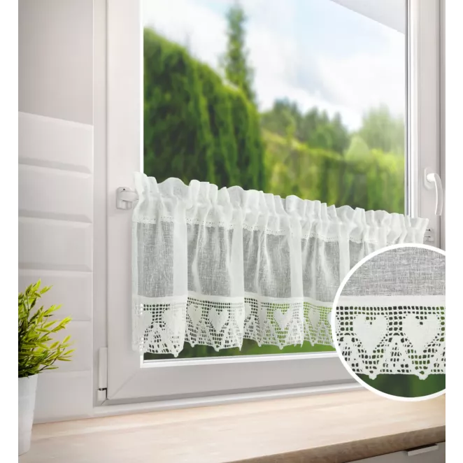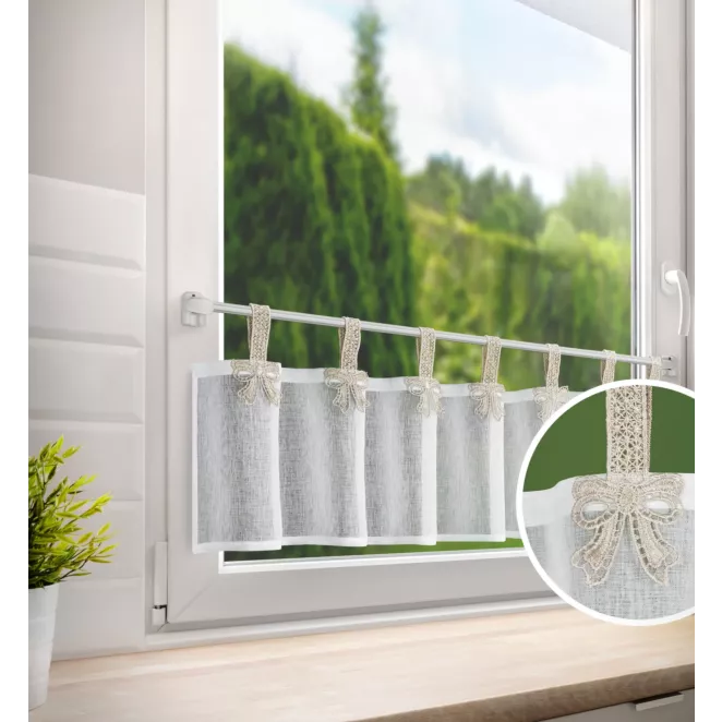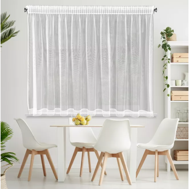 1. Firana biała z szyfonu zdobiona aplikacją w zestawie troczki 400x160 cm taśma - LORETA