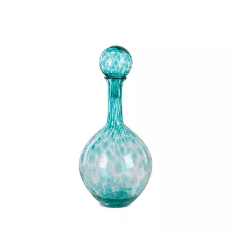Dekoracyjna karafka ISLA ze szkła artystycznego to elegancki dodatek znakomicie uzupełniający wnętrze w stylu boho.  Karafka z barwionego szkła z delikatnym marmurkowym wzorem to modny dodatek o niepowtarzalnym designie. Taki minimalistyczny detal  elegancko prezentuje się w nowoczesnym wnętrzu. Wysmukła karafka to oryginalny dodatek, który ożywi i wzbogaci aranżację wnętrza.   Koniecznie zapoznaj się z pozostałymi elementami naszej kolekcji szkła artystycznego. Dodaj wnętrzu szyku - gwarantujemy, że obok takich dodatków nikt nie przejdzie obojętnie.