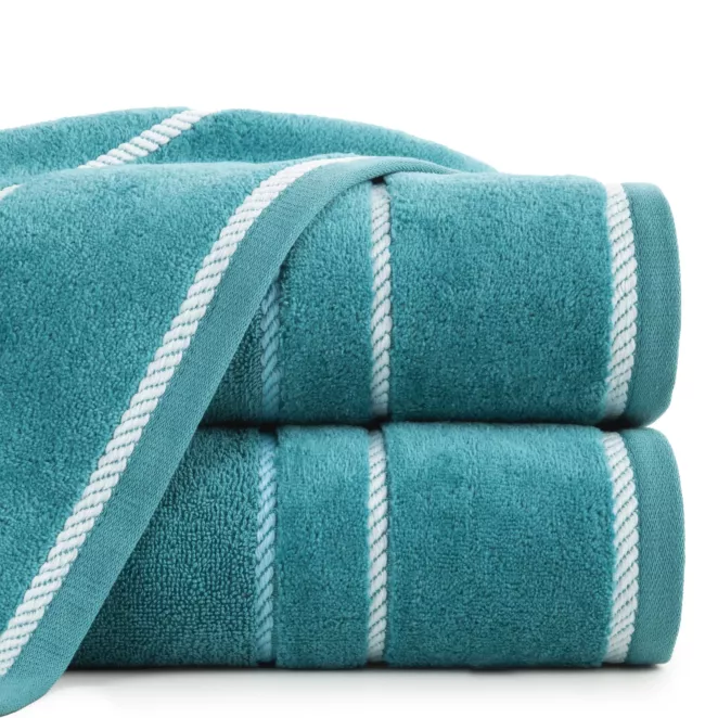 6. Ręcznik do rąk 30x50 cm bawełniany kolor ciemnozielony w kontrastujące pasy 500 g/m2 DINA